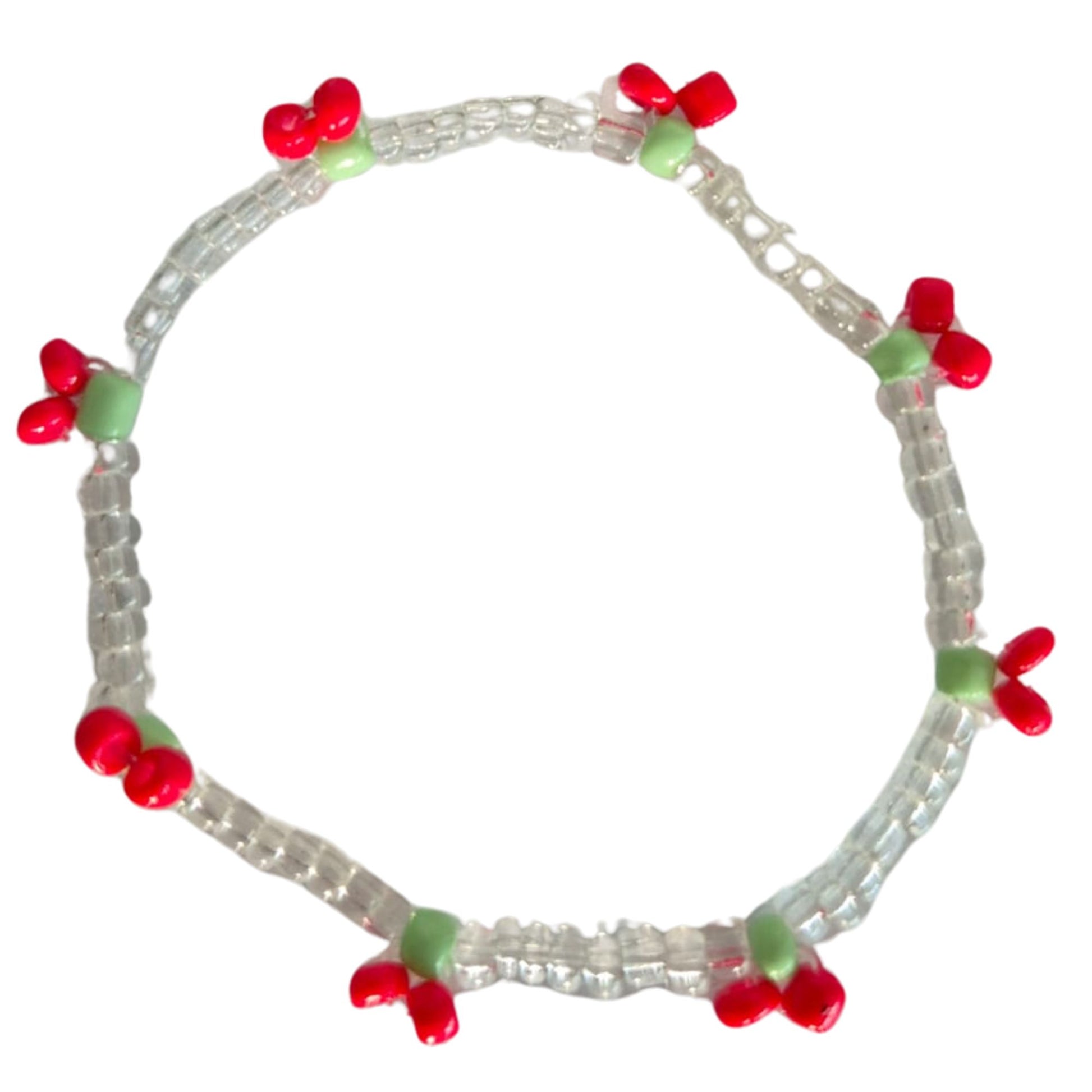 Dieses zauberhafte Kirscharmband aus funkelnden Perlen ist der perfekte Begleiter für fröhliche Mädchen mit einem Sinn für Stil! Die kleinen roten Kirschen aus Perlen, kombiniert mit zarten grünen und klaren Elementen, machen das Armband zu einem echten Hingucker – verspielt, leicht und einfach super süß!