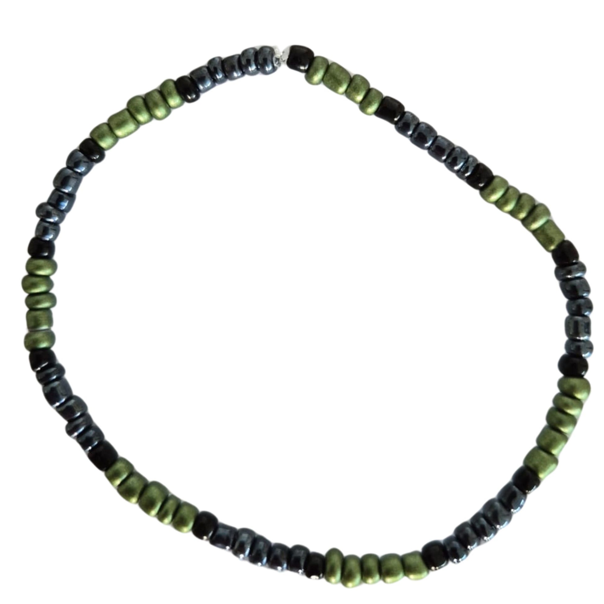 Mit seinem Mix aus dunklem Schwarz und schimmerndem Olivgrün ist das Armband Forest Mood genau das Richtige für alle, die es etwas dezenter, aber trotzdem besonders mögen. Die Perlen erinnern an den ruhigen Look eines Waldes – geheimnisvoll, natürlich und stilvoll.