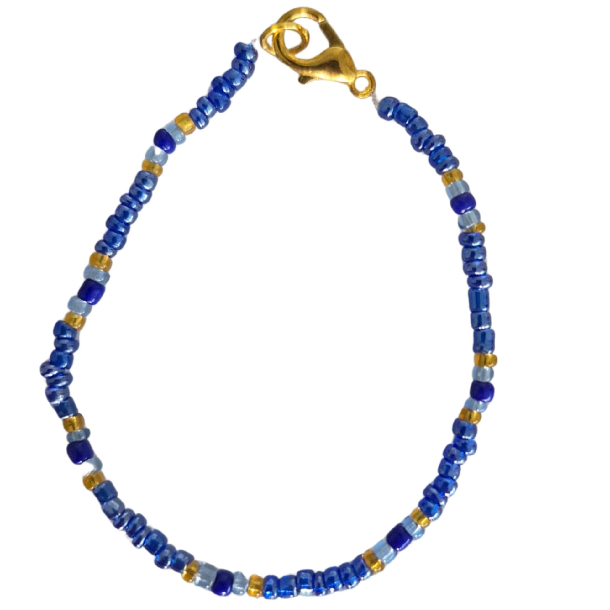 Unser Midnight Armband erinnert an einen funkelnden Nachthimmel – tiefblaue Perlen treffen auf goldene Akzente, die wie kleine Sterne leuchten. Das zarte, aber edle Design macht dieses Armband zu einem besonderen Stück für alle, die das Besondere lieben.